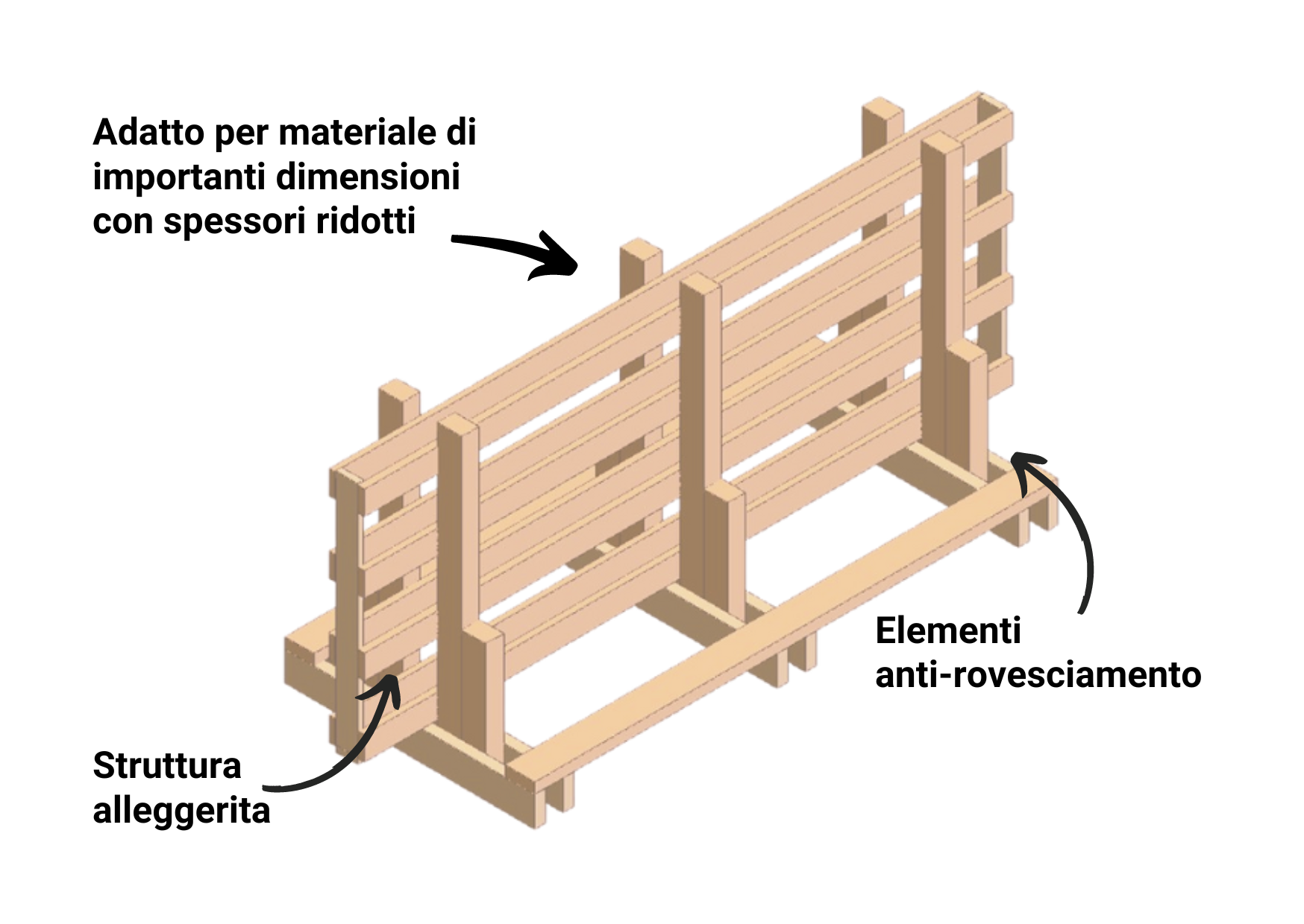 Per la sua realizzzione possono essere impiegate assi più o meno robuste, in base alla portata dell’imballo.